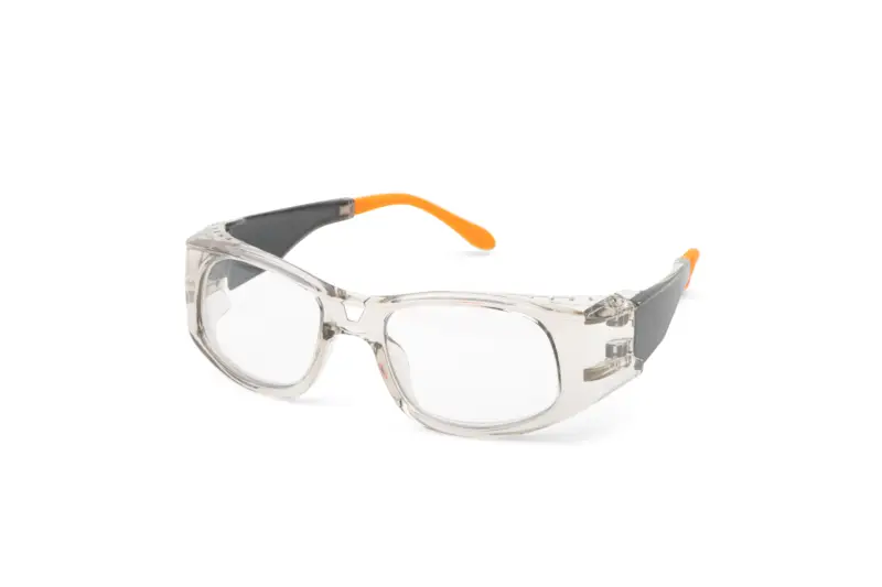 Grijze kunststof veiligheidsbril met polycarbonaat glazen ter bescherming tegen inslag en stof. Voorzien van een kraswerende laag en anti fog coating. Comfortabele neusbrug. Geïntegreerde zij-, onder- en bovenbescherming met indirecte ventilatie.