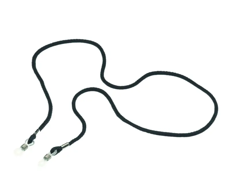 Zwart brilkoordje in kunststof, voor alle soorten brillen. Zeer eenvoudig te bevestigen.
