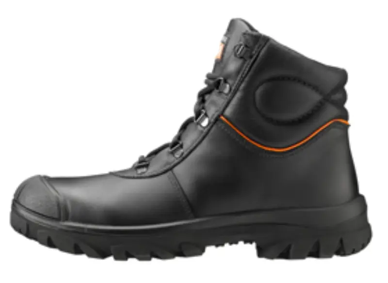 Hoge zwarte veiligheidsschoen in rundsnerfleder met stalen neus en antiperforatiezool, overneus. Voorzien van een Smartec Air Sanitized voering: geur- en schimmelwerend. Volledige inlegzool in anti- bacteriologisch, vochtabsorberend, ademend, uitwasbaar, anti-statisch materiaal. Soepele lichtgewicht 2-densiteiten PU/PU zool met hakprofiel, hoge slijtvastheid, anti-statisch, anti-slip, olie-, benzine- en zuurbestendig, hoog schokdempend vermogen. Lederen binnenzool. Ook beschikbaar in breedte XXD (1018744). Maten: D, 35-49 / XD, 37-49.