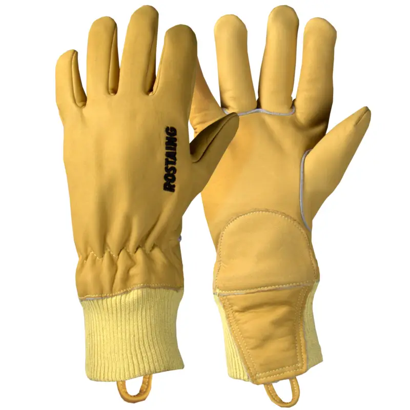 Handschoen voor lichtere (blus)werken. Handschoen en versterking pols in waterafstotend en hittebestendig rundsvolnerfleder van 1,2 mm. Voering in composiet en katoen vezels. Naden van para-aramide garen. Lengte 38 cm waarvan 7,5 cm manchet in splitleder. Maten: 7 / 8 / 9 / 10 / 11 / 12. Conform ISO 15383 TYPE I. EN388:2016 3.4.4.3.B, EN407 X.1.X.X.X.X.