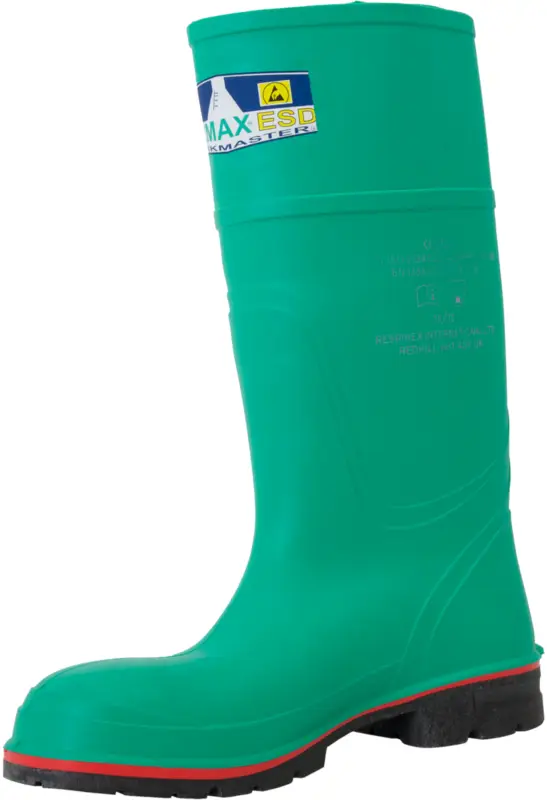 De HAZMAX S5 HRO ESD laars, opgebouwd uit groen, chemisch bestendig HAZMAX met naadloze constructie, bevat een 200J stalen neus en antiperforatiezool in roestvrij staal, met een nog sterkere snijbestendigheid dan traditionele veiligheidslaarzen. De laars kan ook aangepast worden in hoogte. Voering uit geweven nylon. Sterke chemische bestendigheid tegen chemische dampen en stoffen. De gevulkaniseerde en slipbestendige buitenzool in nitril is bestand tegen contacthitte tot 300°C, benzine, oliën en heeft een koude-isolerende functie. De inlegzool is comfortabel, uitneembaar en wasbaar tot 40°C. Maten: 35 – 50.