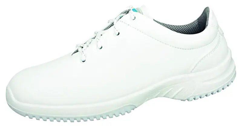 Lage schoen in wit A microfiber, met een metalen 200J neus. Zool in PU/TPU, SRC antislip, bestand tegen oliën en zuren. Uitneembare Sanitized inlegzool in polyurethaan met textiel laag. Maten: 35-48.