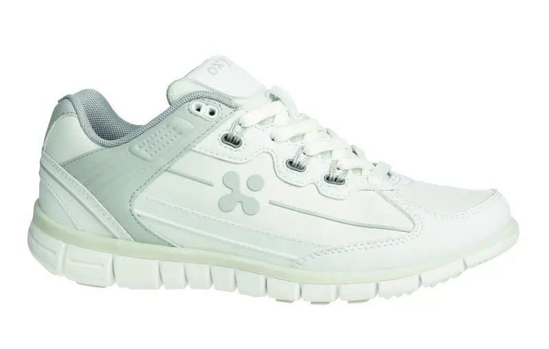 Lage sportieve schoen in microporeus afwasbaar leder met een ademende, kwalitateive binnenvoering in mesh nylon voor extra draagcomfort. De buitenzool, uit zeer licht materiaal (EVA) heeft een zeer goede antisliplaag (keuring SRA vanuit de veiligheidsschoenen) en is schokabsorberend. Maten: 36-42.