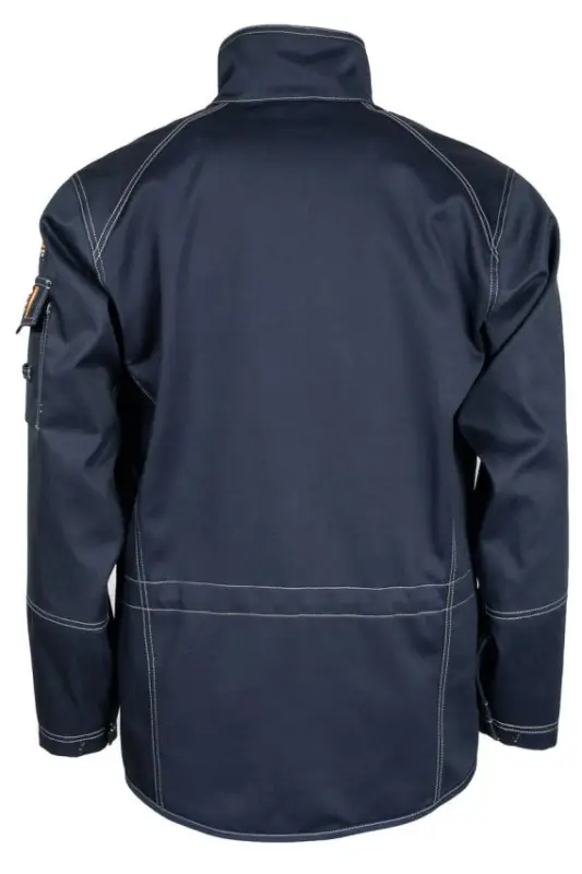 PFAS-vrij en inherent vlamvertragend werkjack in Cantex Weld aan de voorkant en de mouwen, en Cantex Weld/Cantex Weld Stretch aan de achterkant. Beschikbare maten: XS-4XL. Beschikbare kleuren: Marine.