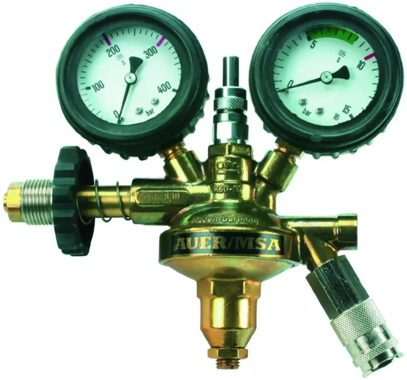 Hoge druk onstpanner voor 200 en 300 bar persluchtflessen met manometer die druk in de persluchtfles aangeeft en een manometer die d e druk in de aangeloten persluchtleiding aangeeft. Voorzien van een fluitsignaal dat waarschuwt wanneer de fles bijna leeg is. Ideaa l om te moneteren op een 50L persluchtfles die kan dienen als luchtvoorraad of als luchtbuffer bij gebruik van persluchtapparaten. O ntspanner met 1 aansluiting voor persluchtslang met rectus of CEJN koppeling.