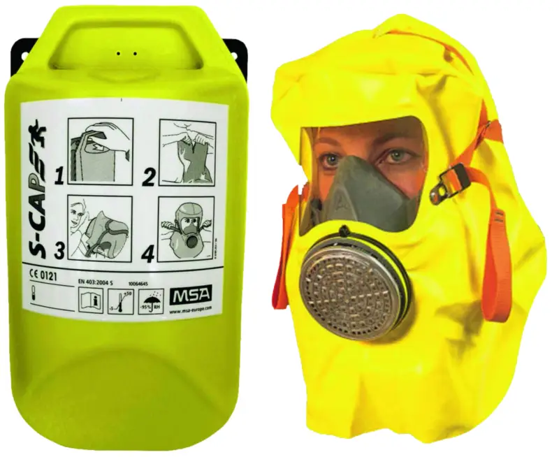 Vluchtkap met COP2 filter, biedt onder andere bescherming tegen brandrook. Makkelijk op te zetten, ook voor brildragers. Universele maat dankzij aanpasbare gele kap, voorzien van katoenen halssluiting voor meer veiligheid. Gebruiksduur: minstens 15 minuten. Niet te gebruikenbij kans op zuurstoftekort. Geleverd in een tweedelige wandbox die verzegeld is. Afmetingen: h x b x d 28,5 x 15,5 x 12,5. Kap vacuüm verpakt. Houdbaarheid: 4 jaar zonder onderhoud, maximaal 10 jaar met onderhoud.