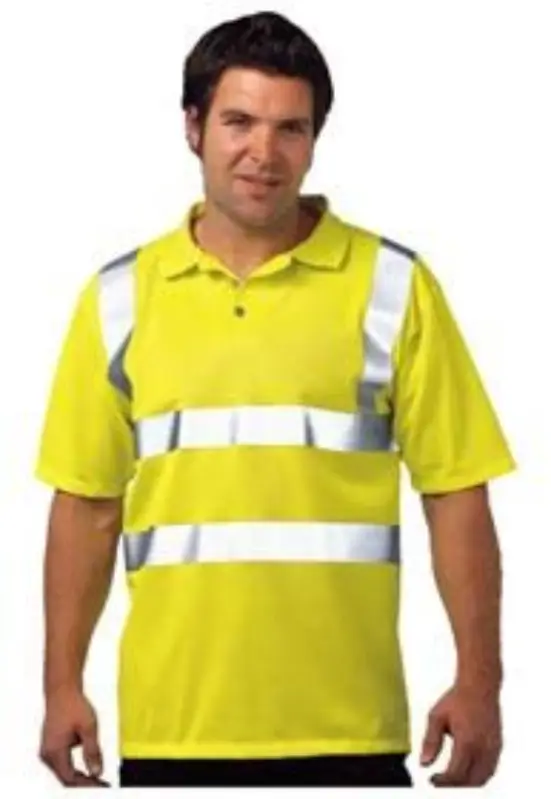 Signa polo Bird Eye Knit, 100% polyester, knoopjes, gewicht 175 gr/m²,kraag in grijs.
