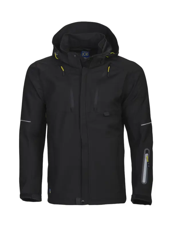 Functionele laag 3 wind- en waterafstotende jas. Twee borstzakken, links met binnenzak op de telefoon. ID-kaarthouder. Twee zijzakken. Mouwzak op de linkerarm. Binnenzak aan de linkerkant met handsfree opening. Ventilatieritsen onder oksels. Verlengd terug. Reflecterende biezen op mouwen en achterkant. Verstelbare en afneembare capuchon. Fleece gevoerde kraag voor meer comfort. Verstelbare manchetten en taille. Kwaliteit: 100% polyester. Beschikbare maten: XS – 4XL. Beschikbare kleuren: zwart, wit, marine, grijs, groen, hemelsblauw en rood.