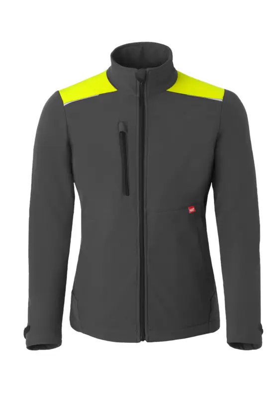 Softshell Shift met ritssluiting, 1 borstzak met ritssluiting, 2 ingezette zijzakken met drukknoopsluiting, mouwen verstelbaar d.m.v. klittenband, verstelbare taille d.m.v. trekkoord, D-ring, reflecterende piping aan voor- en achterzijde van de schouders, binnenzak met klittenband. Kwaliteit: 92%/8% polyester/elastaan, 320 gr/m2 Beschikbare maten: S-3XL. Beschikbare kleuren: zwart/grijs, grijs/blauw, grijs/rood, grijs/fluo geel, charcoal grijs en wit.