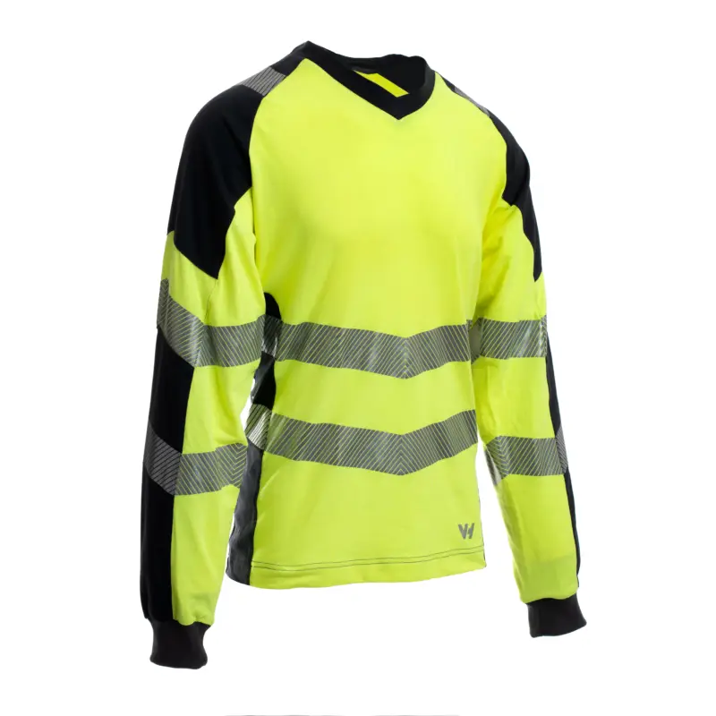 Multinorm T-shirt Diablo: – Lange mouwen; – V-kraag in contrast; – Raglan mouwen; – 2 schuine schuine ref-banden. Kwaliteit: 63% FR VISCOSE -32% NOMEX – 5% ELASTANE. Beschikbare maten: XS-3XL. Beschikbare kleuren: Fluo geel/grijs.