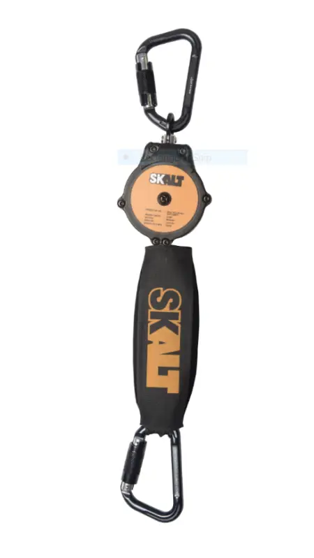 Valstopapparaat 2 meter band met schokdemper aan het einde van de webbingband . Behuizing uit polymeer. Dient als verbinding tussen ankerpunt en harnas. Voorzien van 2 Skalt Comito zelfsluitende aluminium musketonhaken met 20mm opening. Getest voor verticaal gebruik met gewicht van 140kg, en horizontaal gebruik van 100 kg. Ook getest voor valfactor 2. Gewicht: 1kg.