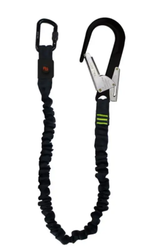 Vanglijn 2 meter uit elastische band 43 mm breed met geïntegreerde valdemper. Nietuitgerokken meet de vanglijn 1,2 meter, hetgeen zorgt voor betere manipuleerbaarheid van de vanglijn. Voorzien van 1 standaard musketonhaak en 1 steigerhaak. Dient als verbinding tussen ankerpunt en harnas.
